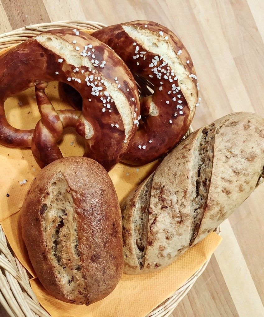 - Brezel (auch mit Butter, Mett, Frischkäse oder Salami belegt)